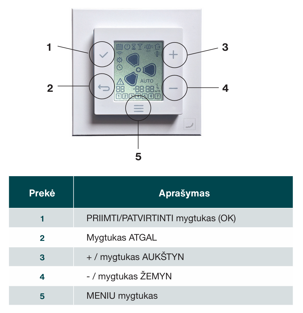 Zehnder EVO vėdinimo įrenginys taip pat gali būti valdomas išmaniuoju Multi Control valdymu pultu.