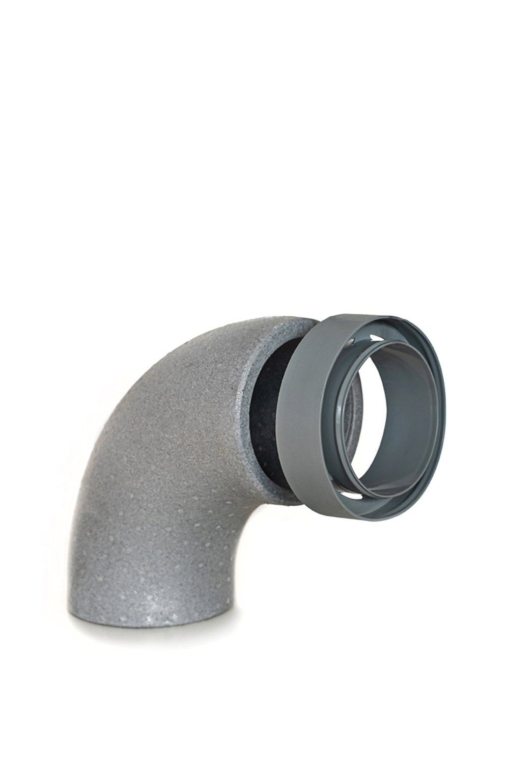 Polistireninio putplasčio 90° alkūnė su mova, d125 ortakių jungimui.